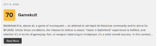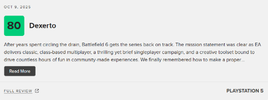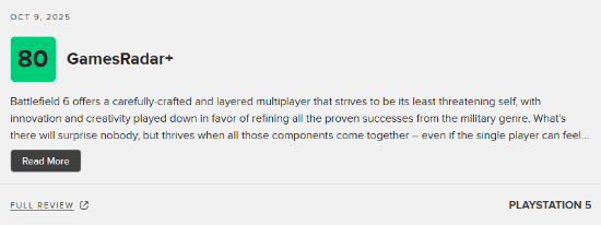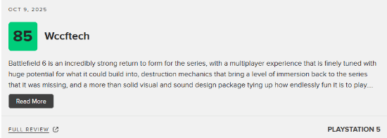 《战地6》媒体均分83分!多人模式获赞战役平庸