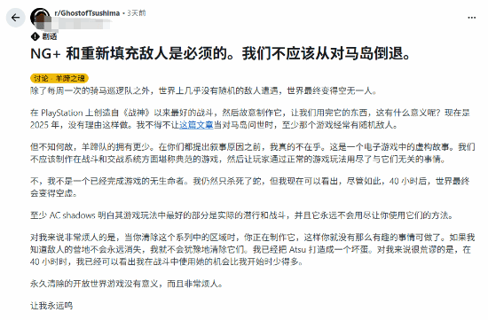 羊蹄山之魂玩家争议:不刷敌人太没劲