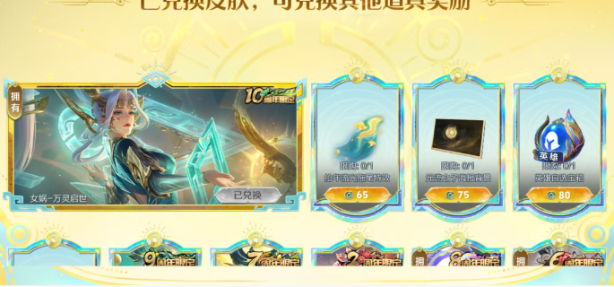 1、女娲十周年限定万灵启世很值得大家去兑换,玩家可以通过“周年皮肤免费送”活动免费获取。