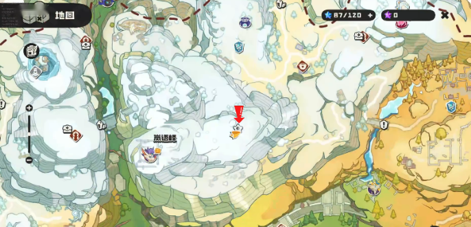 打开地图后向右侧移动,按照红色箭头提示即可到达。