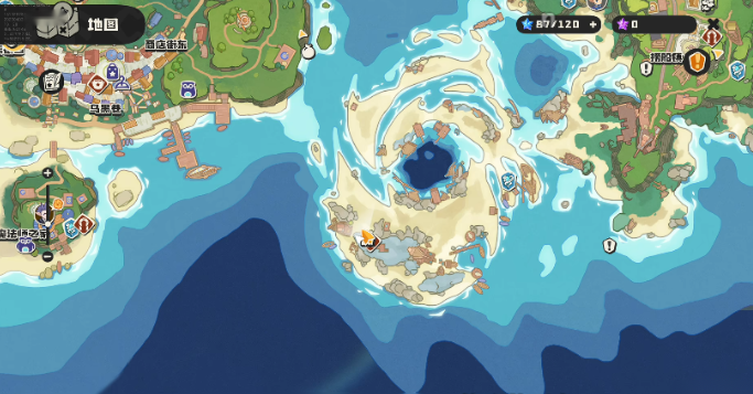 在地图上可看到带有漩涡的小湖旁停着一艘小船。