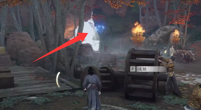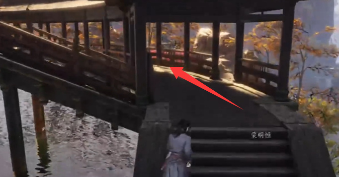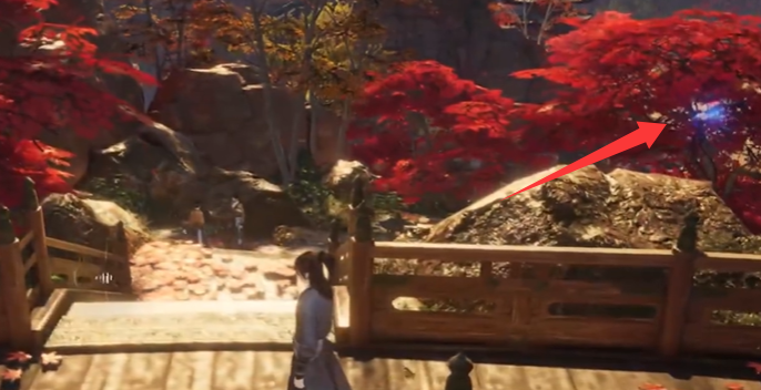 3、走到图中的位置,调整视角,即可看到右边石头上的曲径。