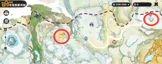 1、想要刷异色雪影娃娃需要先获取果实,果实的两个位置如下。