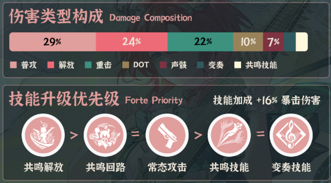 加点顺序:共鸣解放>共鸣回路=常态攻击>共鸣技能=变奏技能