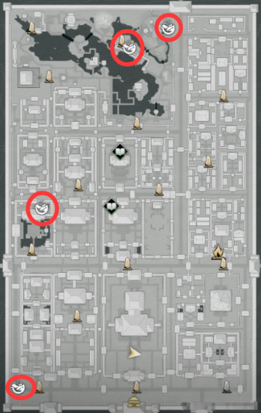 在皇宫地图里有五个地点可以和NPC进行斗蛐蛐,完成挑战后可以获得丰富奖励。第一个在宝慈宫的上面,第二个在后苑传送点的上面,第三个在长春殿的右手边,第四个在武德司的左上方,第五个在内库三馆附近。当打完这五个NPC后会解锁第六个挑战,在禁中诸库左下方。建议按照地图顺序依次挑战,熟悉不同NPC的蛐蛐配置和战斗节奏。